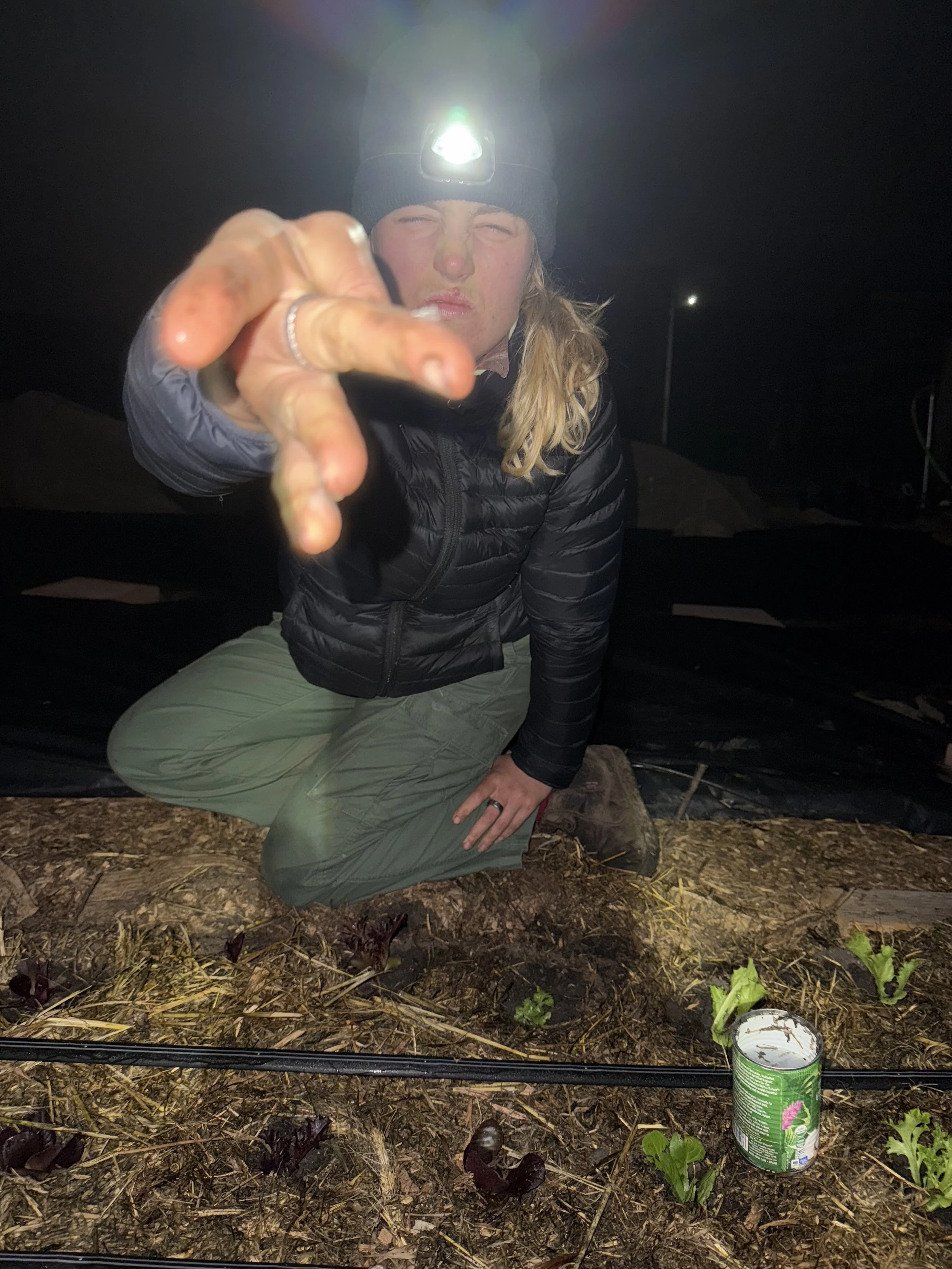 It’s been slightly horrifying. Also strangely fun. Night slug patrol has turned into an unexpected bonding ritual. So neighbors, if you see two headlights pointed at our lettuce beds between 7–9 pm… now you know.